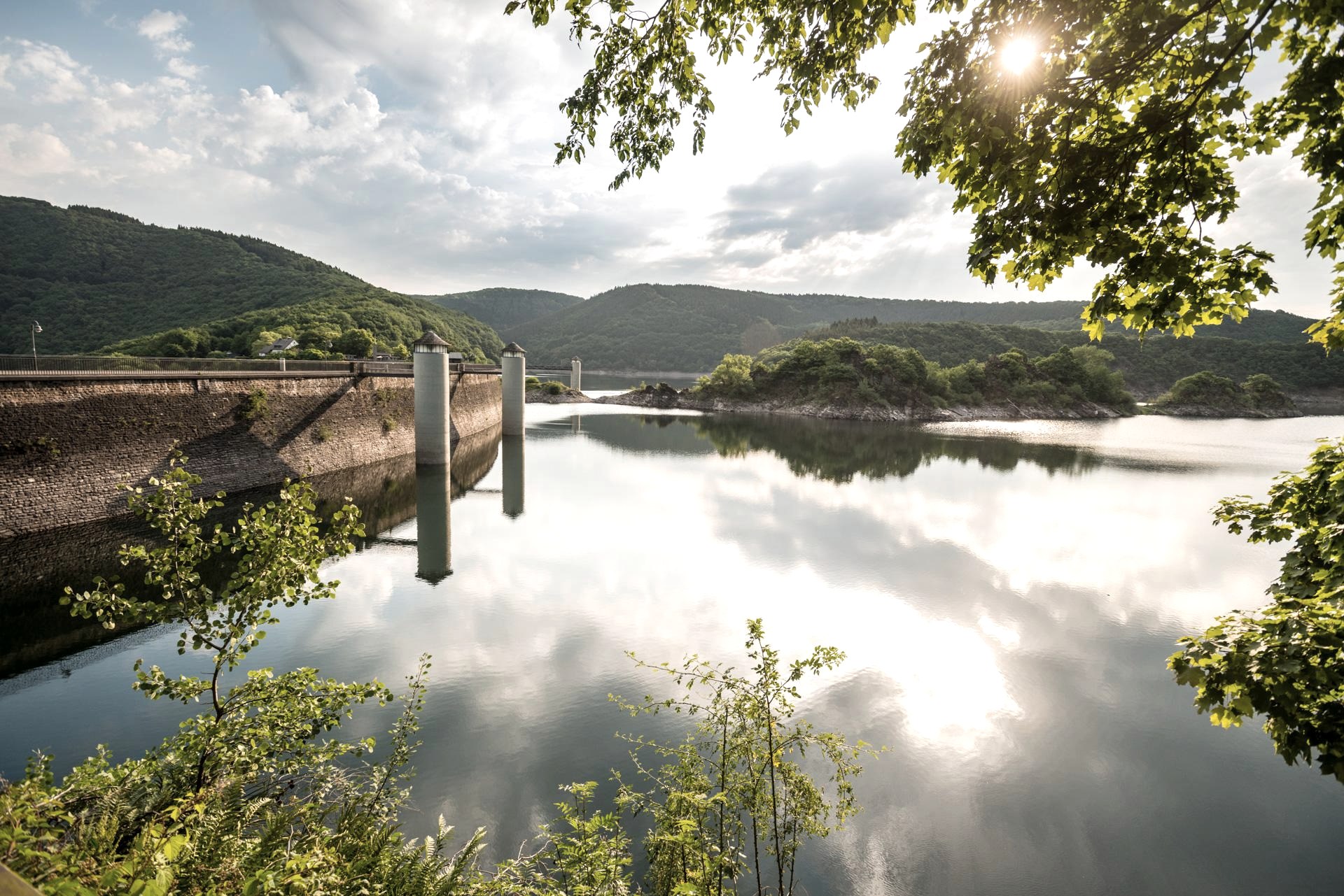 Die Urfttalsperre ist die älteste Talperre der Eifel und befindet sich mitten im Nationalpark Eifel. Die Urftstaumauer wurde seinerzeit als größtes Bauwerk in Europa geplant. Mit dem Bau der 266 m langen Mauer aus Bruchsteinen wurde 1899 begonnen - im Mai 1905 war die Talsperre erstmals mit Wasser gefüllt. Ziel der wasserbaulichen Maßnahme war neben dem Hochwasserschutz und der Energiegewinnung die Trinkwasserversorgug der Region. Mit einer Länge von 12 km, einer Breite von bis zu 1 km und einer Tiefe von maximal 52 m hat der Urftsee ein Fassungsvermügen von 45,5 Mio Kubikmetern.