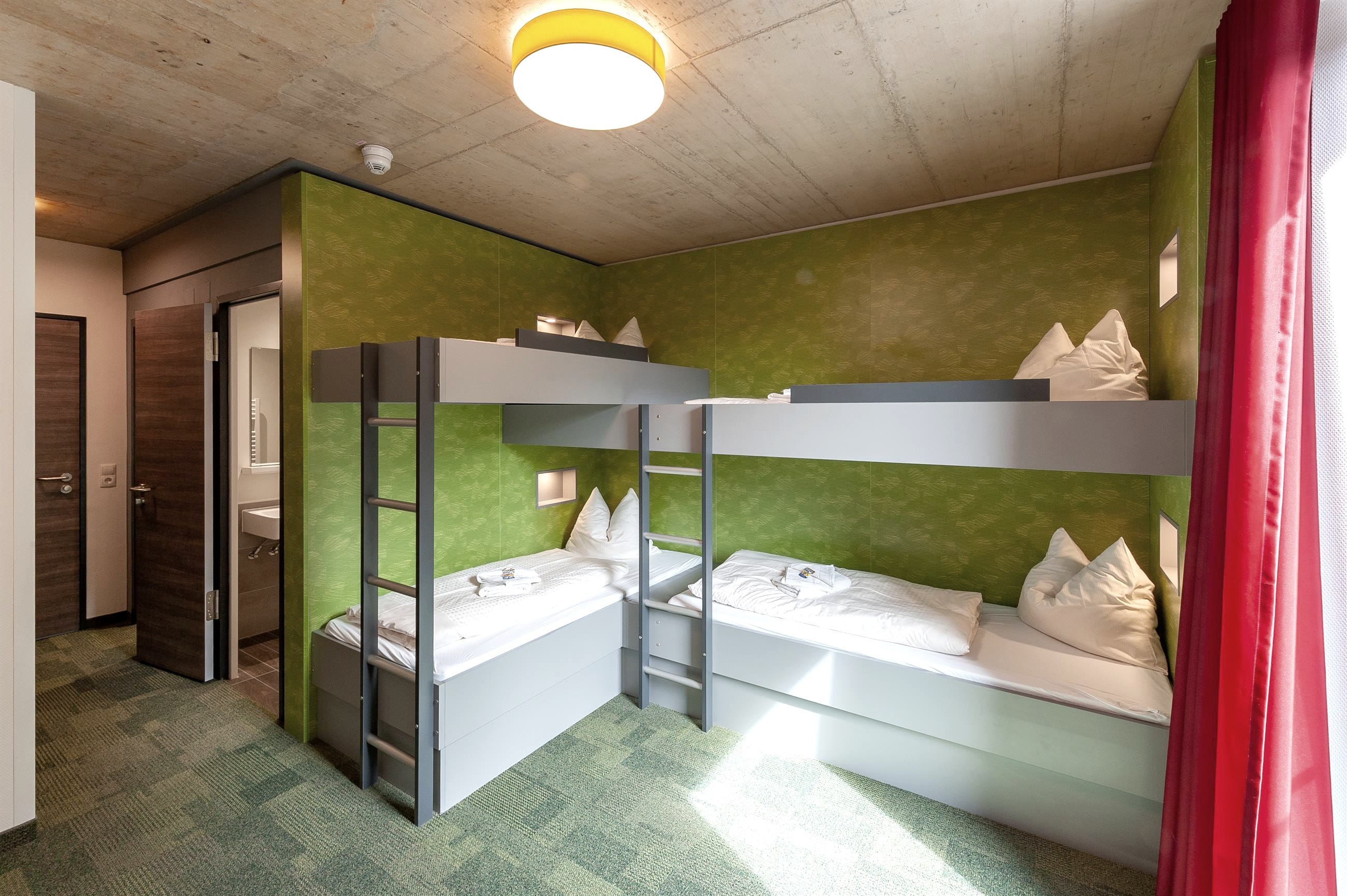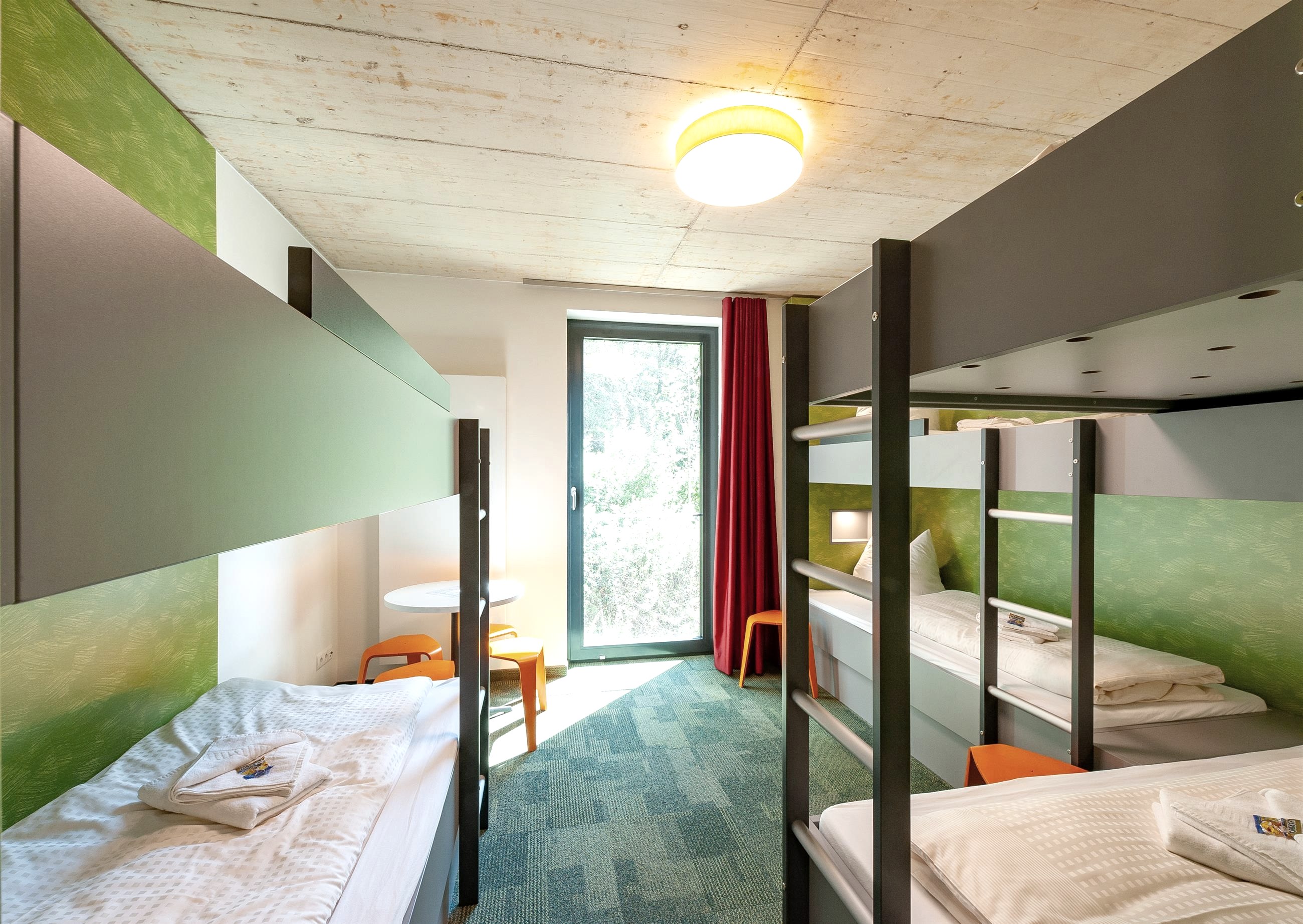 Te midden van een bos- en waterrijk dal, in het Nationaal Park Eifel, past het gebouw met zijn indrukwekkende houten gevel en grote transparante ramen perfect in de omliggende natuur. De jeugdherberg behoort tot de gecertificeerde nationale park aanbieders en is daarmee het ideale startpunt voor tal van outdoor activiteiten.