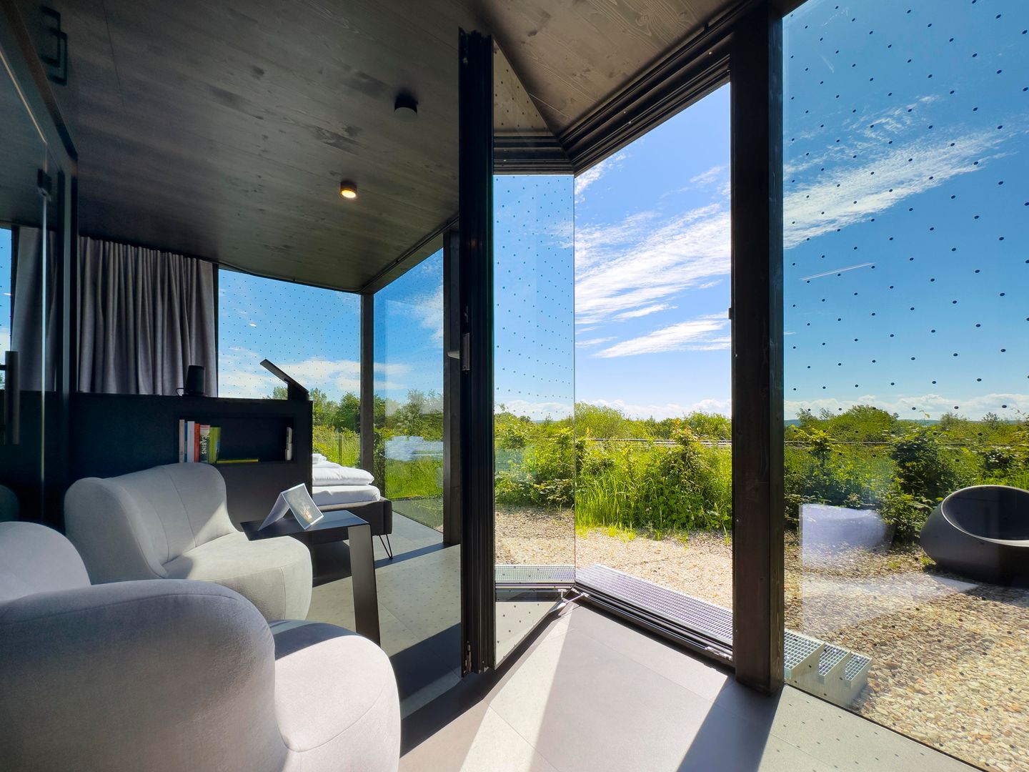 - 9 mal 1-2 Personen Haus Style, 6 davon sind mit eigener Sauna. Alle haben eine Wohnfläche von 25 qm. 4 von den Häusern sind mit Hund erlaubt (max. 1)