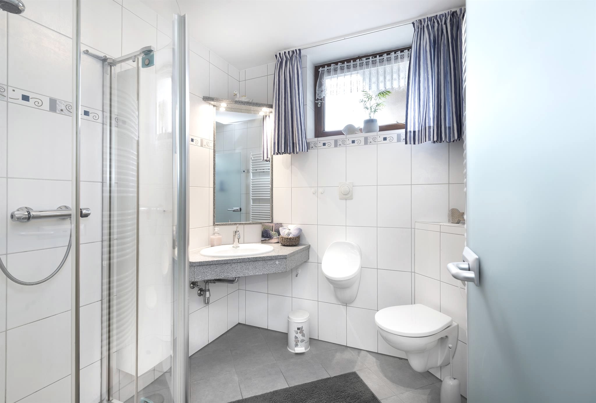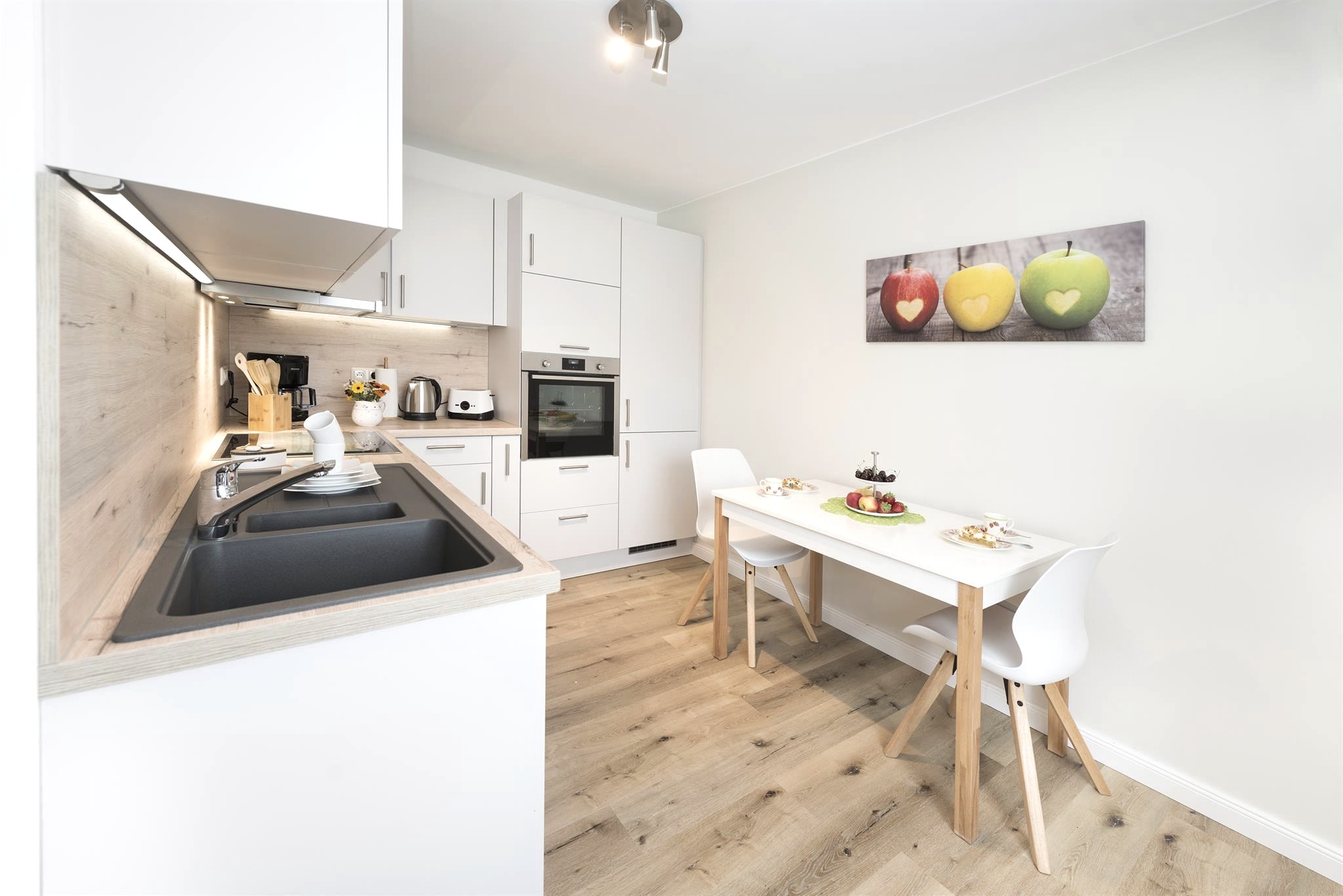 Unsere Ferienwohnung ist eine helle und freundliche, nahezu komplett neu eingerichtete Nichtraucher-Ferienwohnung mit Wohnzimmer, Küche, Schlafzimmer, Badezimmer mit Dusche, WC und Urinal, sowie Diele und Flur mit einer Wohnfläche von ca. 54 Quadratmetern. Sie ist für max. zwei Erwachsene und ein Kleinkind geeignet.