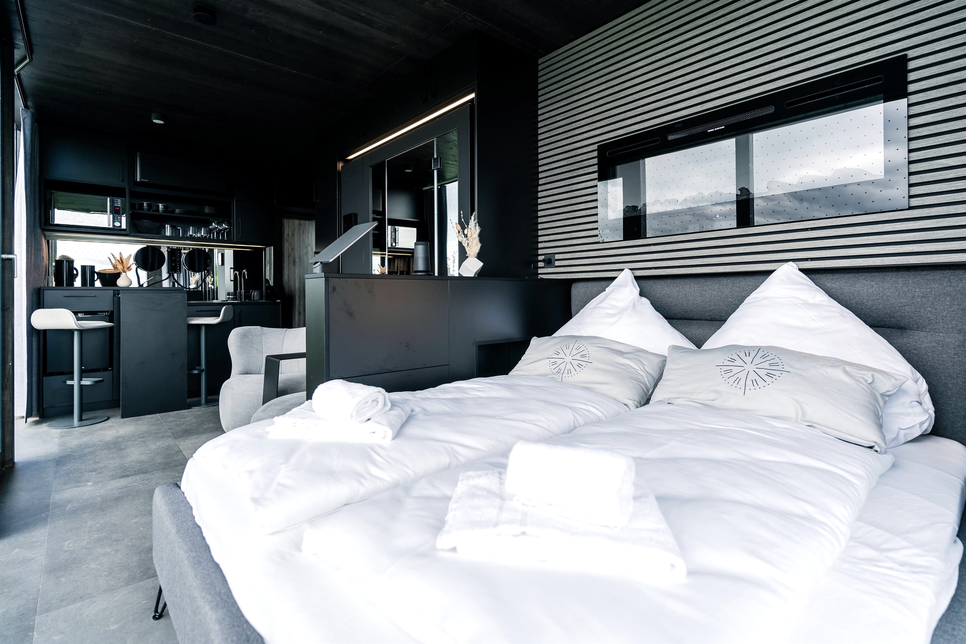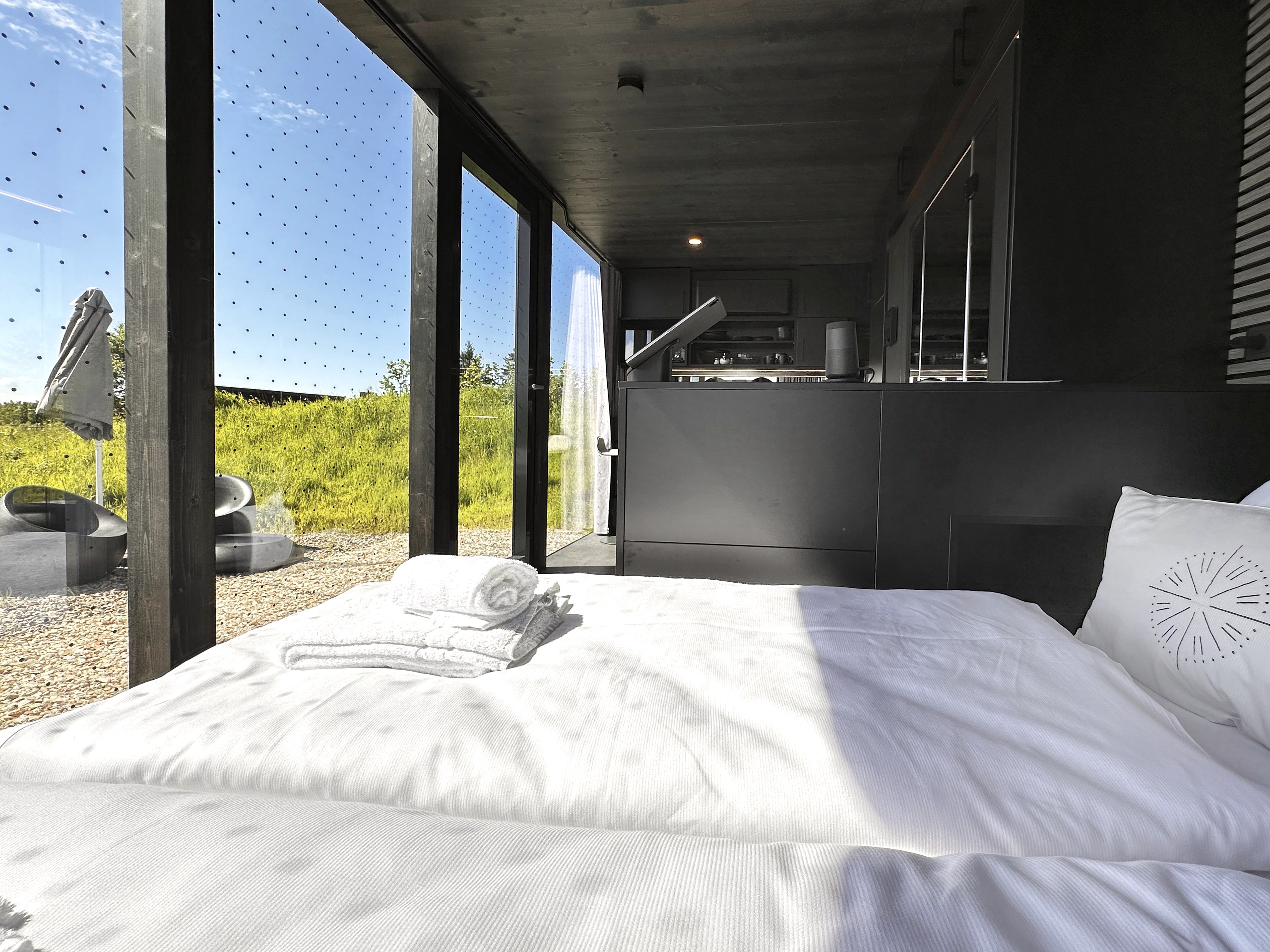 - acht mal 2-Personen Haus Cozy mit einem Schlafzimmer und 40 qm Wohnfläche, davon sind 4 mit Hunden erlaubt (max. 2)